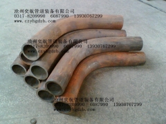 奕航公司讲解中频弯管和推制弯头的区别 中频弯管就是利用高压中频加热钢管煨制的弯管,一般口径在φ50mm-φ1600mm之间,现在由于技术的改进,中频弯管可以一次成型热煨钢管口径达2米以上,倍数有3D,4D,5D,6D等,可以根据客户要求或者设计单位图纸的需要随即自行设定度数,灵活性比较强。 推制弯头有些加工特点和中频弯管极为相似,同样也是利用高压中频加热钢管技术推制弯头,不同的是钢管口径的变化,例如:φ89的无缝钢管通过加热后,在变径的芯棒中套过,就可以推制成φ133的弯头,需要注意的是,在推制变径的过程中壁厚也存在的变化,所以,在选用无缝钢管的时候要充分考虑到壁厚的减小,故此要选用比推制弯头成品厚一些的钢管,才能保证弯头的壁厚,倍数一般在1D,1.5D,2D等小倍数,加工过程和倍数是中频弯管和推制弯头的两大主要区别。